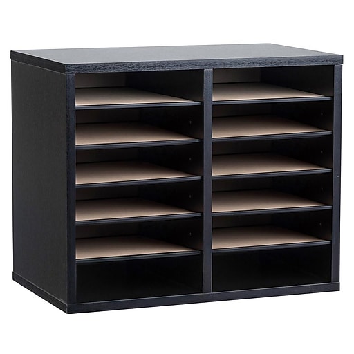 Quickly organize and store letters, mail, and other documents made using a more durable plastic, this black matte finish letter sorter can be used stand alone or mixed and matched with other pieces
